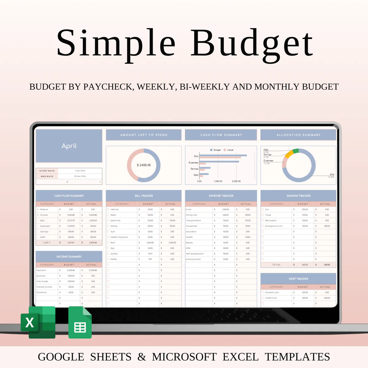 After completing your purchase, you will receive instant access to download the budget planner template.